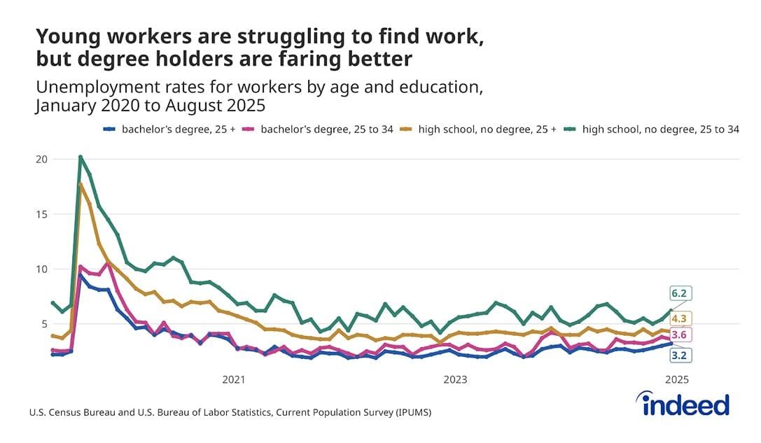 Recent grads’ market is soft: unemployment ~5.3%–5.8% in 2025.